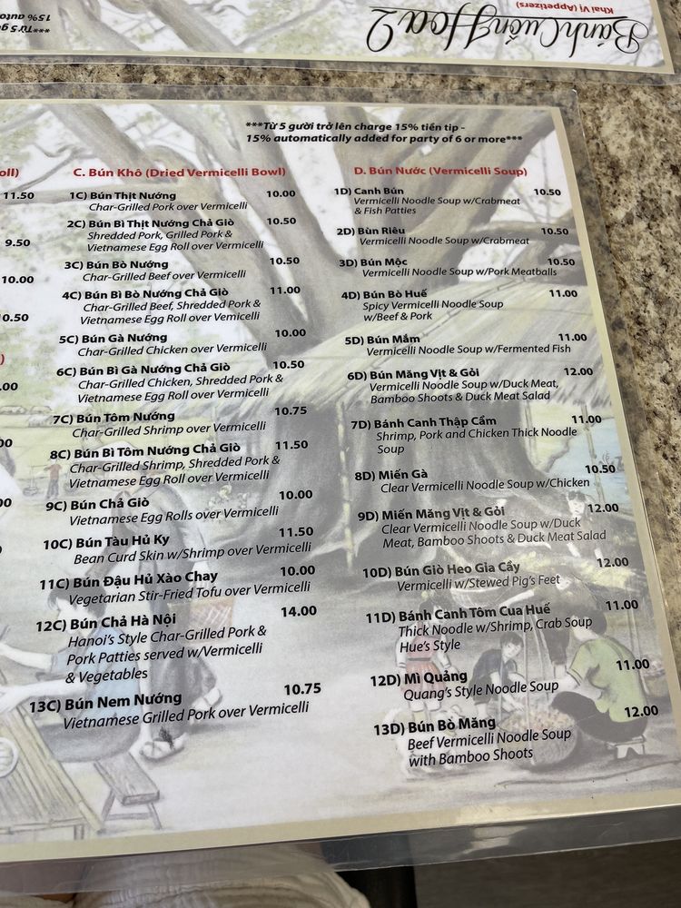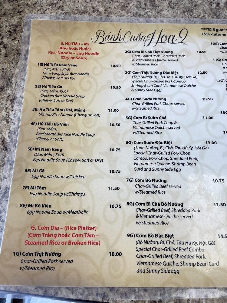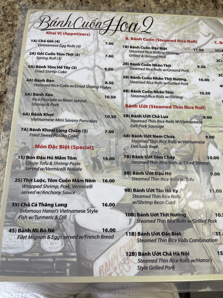 Banh Cuon Hoa 2 Menu (Update 2025)